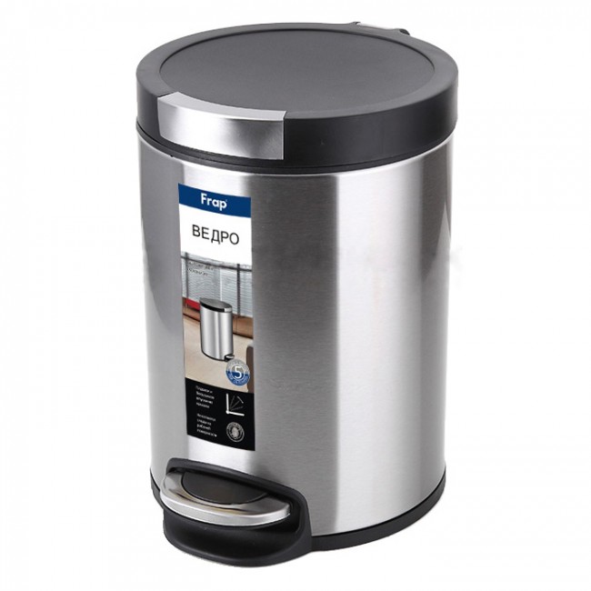 Ведро Frap для мусора на 5 литров F711 в цвете сатин, благодаря своему дизайну хорошо впишется в любой интерьер. Немаловажным фактом является абсолютная нетоксичность используемого для изготовления мусорного ведра материала. Ведро выполнено из нержавеющей стали с покрытием сатин, устойчивой к влаге и коррозии. Удобная ножная педаль позволит открывать ведро без использования рук, закрывание происходит плавно благодаря механихму Soft Close. Надежная петля, прикрепленная к задней стенке ведра, позволяет удобно переносить изделие или подвешивать его к стене. Ведро оснащено внутренним ведром из пластика, которое непосредственно наполняется мусором. Пластиковое внутренне ведро имеет удобную ручку для легкого извлечения.