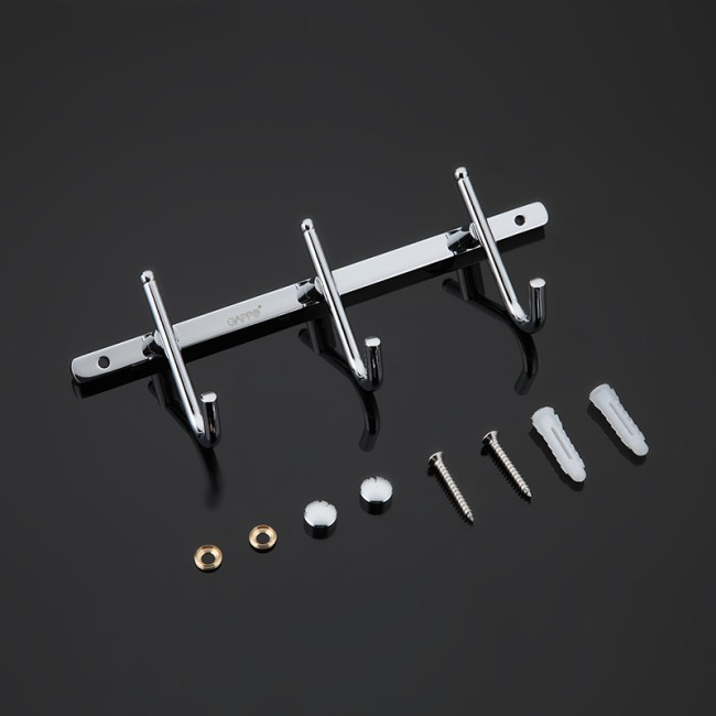 Вешалка 3 крючка Gappo G201-3 отличается стильным дизайном в сочетании с высоким уровнем практичности, функциональности и надёжности. Устанавливается на стену посредством шурупов или саморезов. Стойкое хромированное покрытие даёт возможность гармонично вписаться в современный интерьер ванной комнаты.