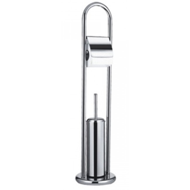 Напольный ёрш для унитаза с бумагодержателем сделан из нержавеющей стали. Ерш полностью погружается в чашу, которая препятствует распространению микробов и брызг по ванной комнате. У бумагодержателя имеется крышка, которая защищает бумагу от пыли. Конструкция имеет литую форму.