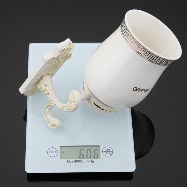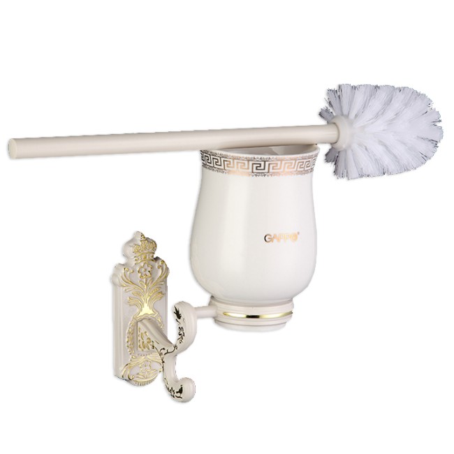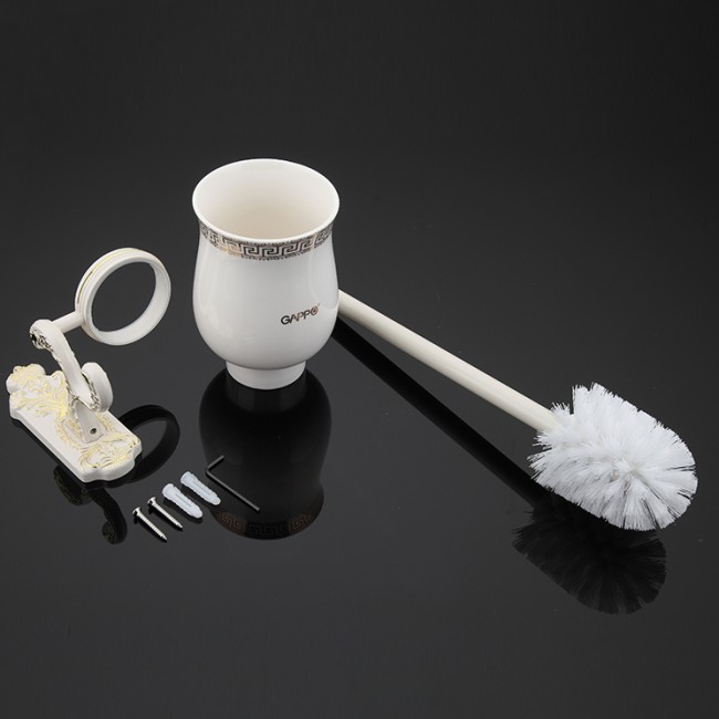 Устанавливается на стену посредством шурупов или саморезов. Стойкое гальваническое покрытие белого цвета с золотым орнаментом даёт возможность гармонично вписаться в классический интерьер ванной комнаты.