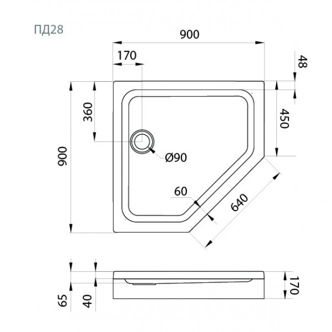 Акриловый - поддон ПД28 90*90*17 низкий пятиугольник