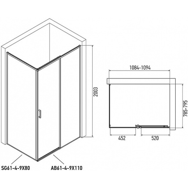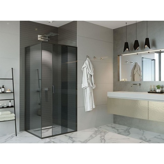 Боковая стенка SG64B80 тонир. стекло 6мм, профиль черный (800*2000) Alex Baitler