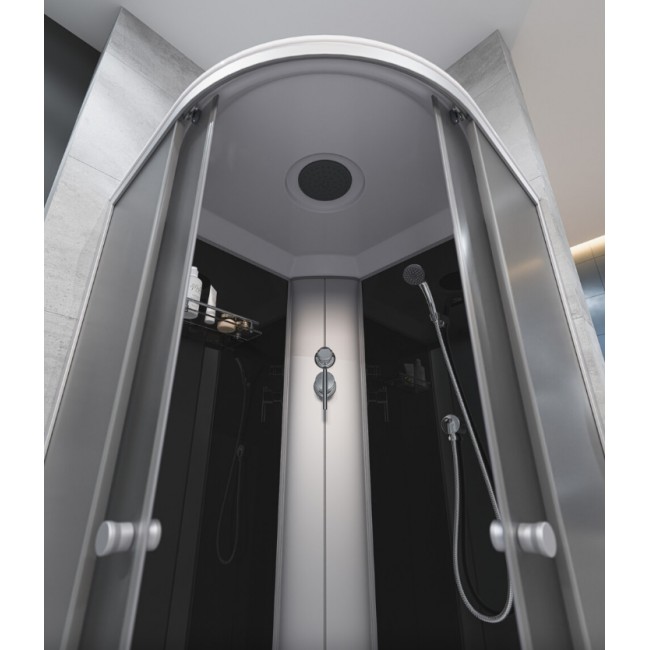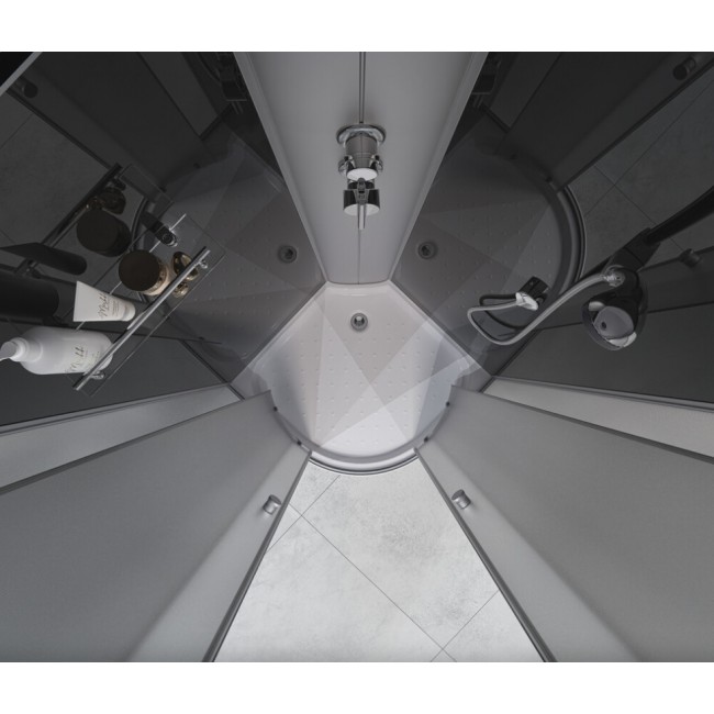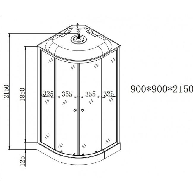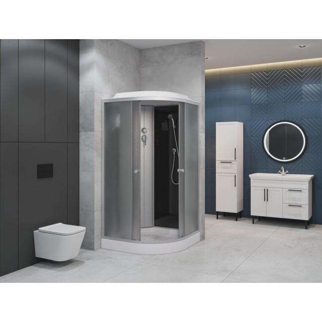 Душ каб EvaGold 90*90 полукруг F901BS (низ.под., рифл. стек., черн. стен., хром матовый проф)