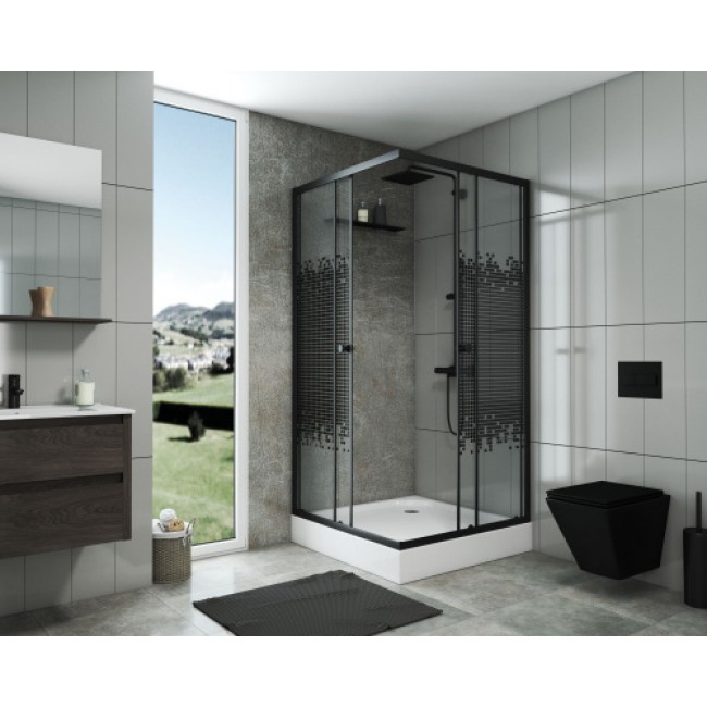 Душ. ограждение NIAGARA NG-1008-14Q BLACK (800х800х1950) стекло МОЗАИКА (БЕЗ ПОДДОНА)