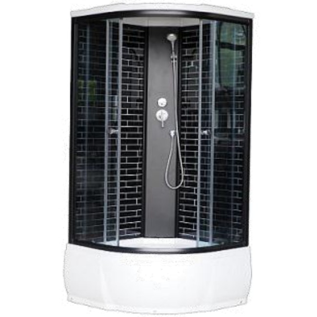 Передние стекла: 4 мм, тонированные; стекла: 4 мм, черные "КИРПИЧИКИ" в металлическом каркасе. Высота поддона 42 см.