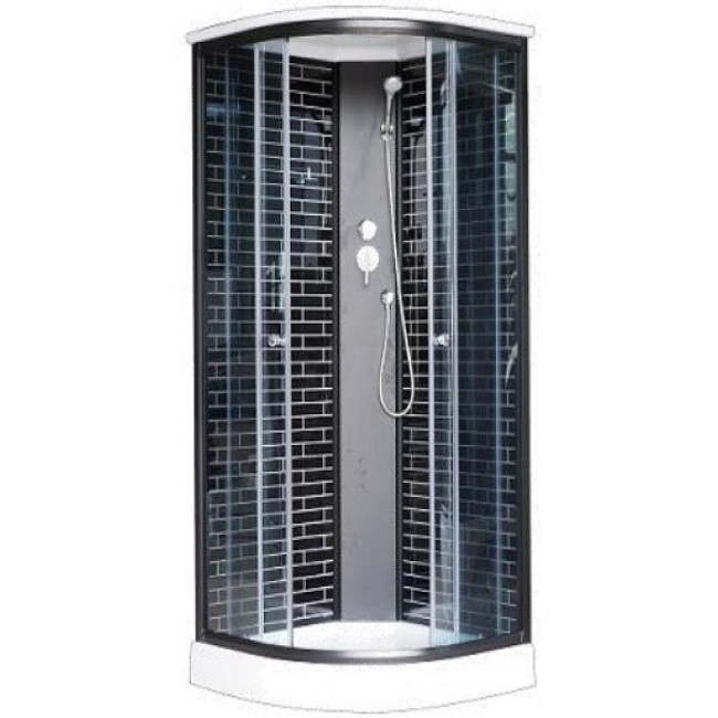 Передние стекла: 4 мм, тонированные; Задние стекла: 4 мм, черные "КИРПИЧИКИ" в металлическом каркасе. Высота поддона 15 см.