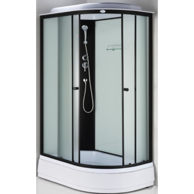 Передние стекла: 4 мм, матовые; Задние стекла: 4 мм, белые в металлическом черном каркасе. Высота поддона 25 см.