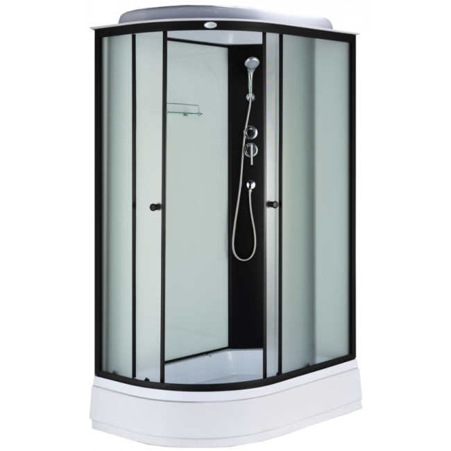 Передние стекла: 4 мм, матовые; Задние стекла: 4 мм, белые в металлическом черном каркасе. Высота поддона 25 см.