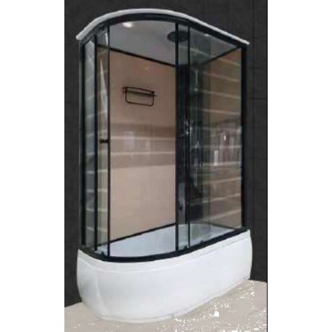 Передние стекла: 4 мм, прозрачные с черной полосой; Задние стекла: 4 мм, бежевые ПОЛОСЫ в металлическом каркасе. Высота поддона 42 см.