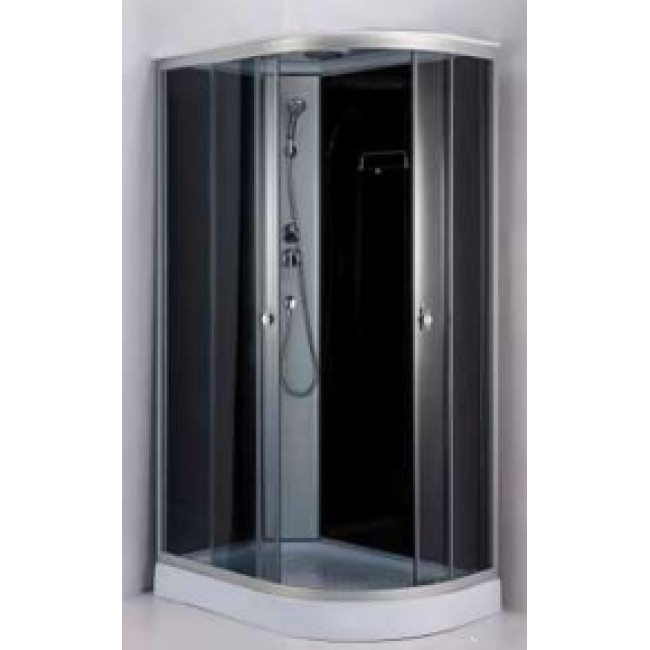 Передние стекла: 4 мм, матовые; Задние стекла: 4 мм, белые в металлическом каркасе. Высота поддона 13 см.