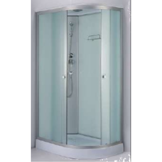 Передние стекла: 4 мм, матовые; Задние стекла: 4 мм, белые в металлическом каркасе. Высота поддона 13 см.