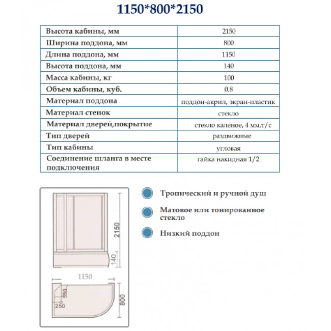 | Максимально допустимая нагрузка на душевой поддон, кг | 120 |