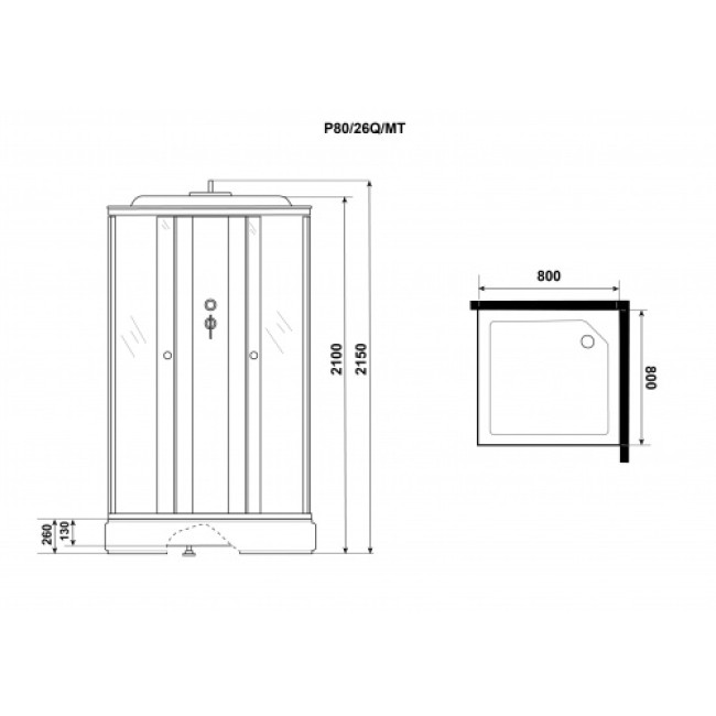 Душевая кабина Promo P80/26Q/MT средний поддон 800х800х2150 Niagara