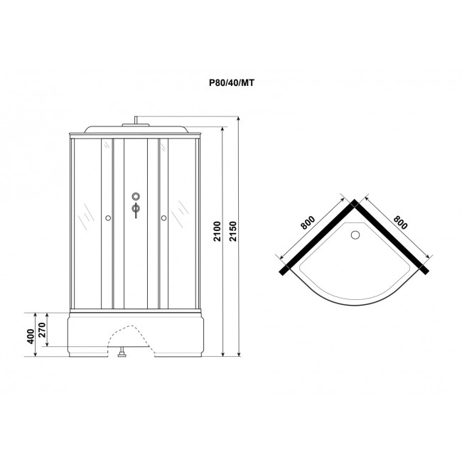 Душевая кабина Promo P80/40/MT высокий поддон 800х800х2150 Niagara