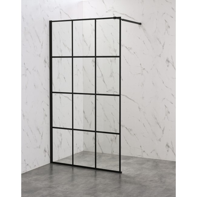 Душевая перегородка ODA-B01B б/с 100*195 черный профиль стекло 8мм, штанга ОДА