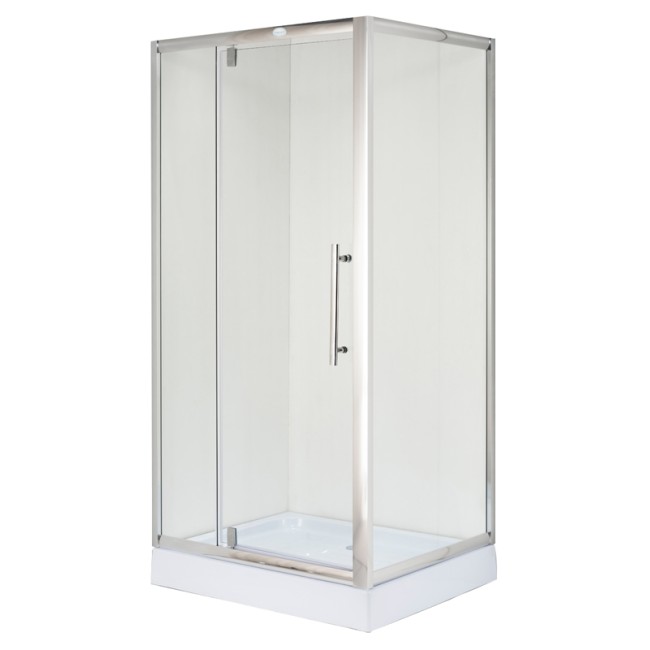 Стекло 6 мм, прозрачное, усиленный алюминиевый каркас "хром", петли из цинкового сплава. Высота поддона 13 см.