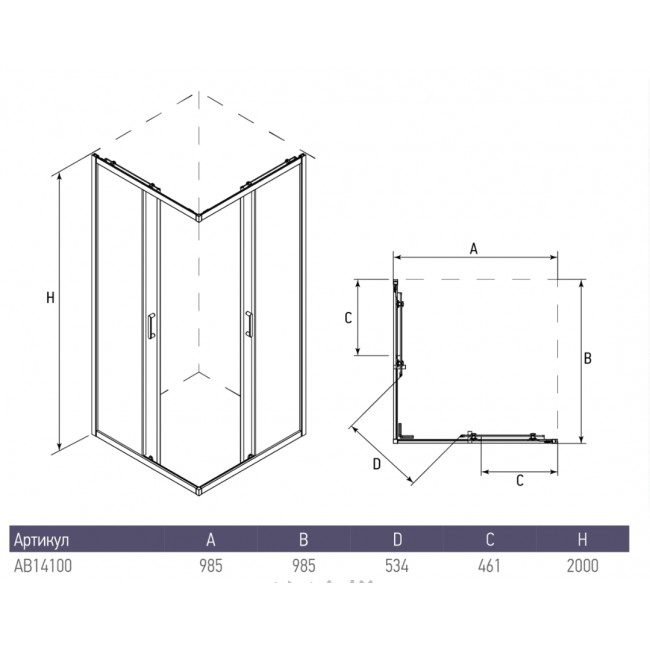 Душевое ограждение ALEX BAITLER AB14100B1 (1000* 1000* 2000)