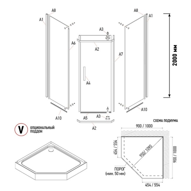 | Форма душевого ограждения | Трапеция |