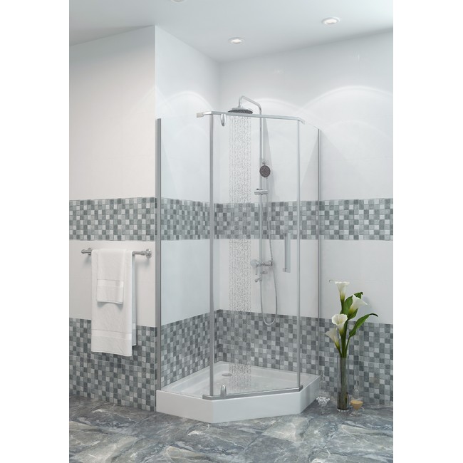 Душевое ограждение трапеция 100, без поддона, прозрачное стекло Грандфаянс