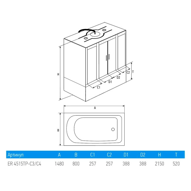 Душевой бокс ER4515ТP-C3 Erlit