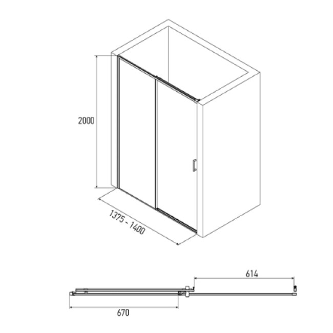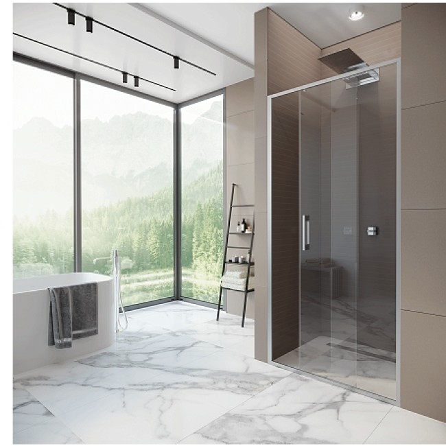 Дверь в нишу AB61C140 раздвижная, прозрачное стекло 6мм, профиль сатин, 1400*2000 Alex Baitler