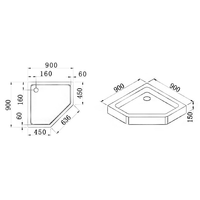 Поддон ABS12 акриловый 90 трапеция с сифоном Грандфаянс