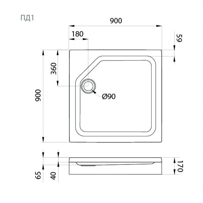 ДЛИНА 900мм; ШИРИНА 900мм; ВЫСОТА 170мм; ВЫСОТА ЭКРАНА 130мм; ГЛУБИНА 65мм; МОНТАЖ - стальной каркас; ДИАМЕТР СЛИВА 90мм;