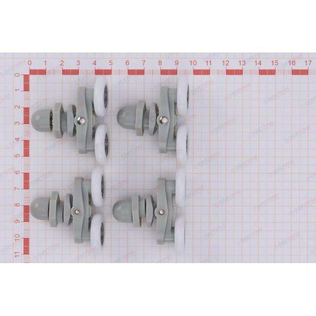 В блистерной упаковке находится комплект на одну дверь. В комплекте два верхних и два нижних ролика.