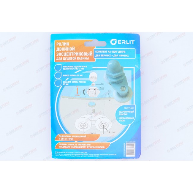 Ролик дверной эксцентрик двойные комплект на дверь блистер 25мм Erlit