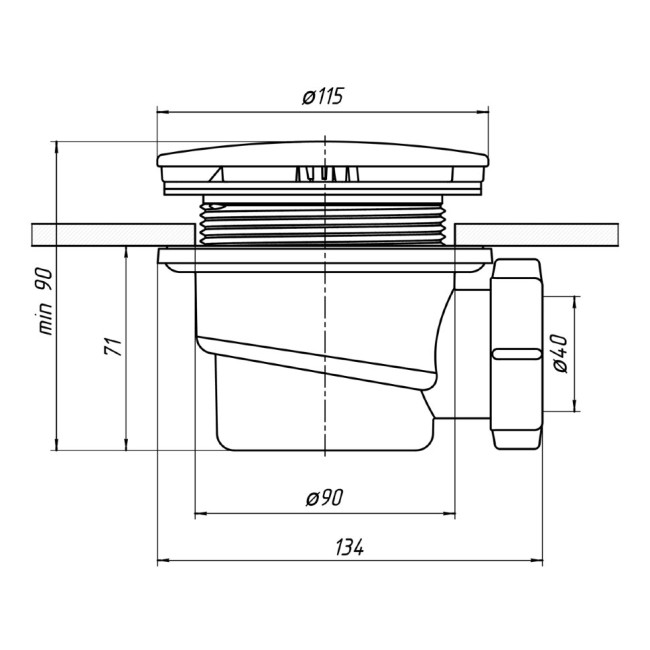 Сифон для душ поддона D90мм DK-01-08 E320VAL только для поддонов ПД1; ПД2; ПД21; ПД22 Орио