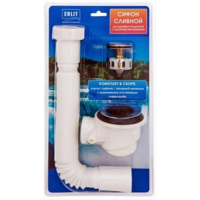 Сифон с запорным механизмом блистер для высоких поддонов Erlit