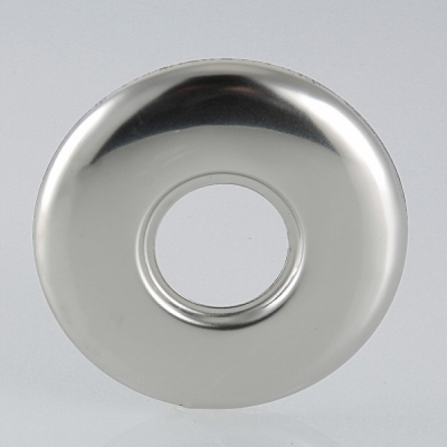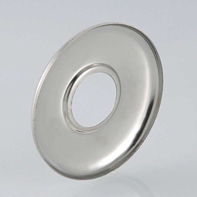 Неразъемная латунная чашка (отражатель) с гальванопокрытием. Используется в качестве декоративного экрана в местах подключения к водопроводу бытовых кранов, резьбовых эксцентриков сантехнических смесителей и т.д.