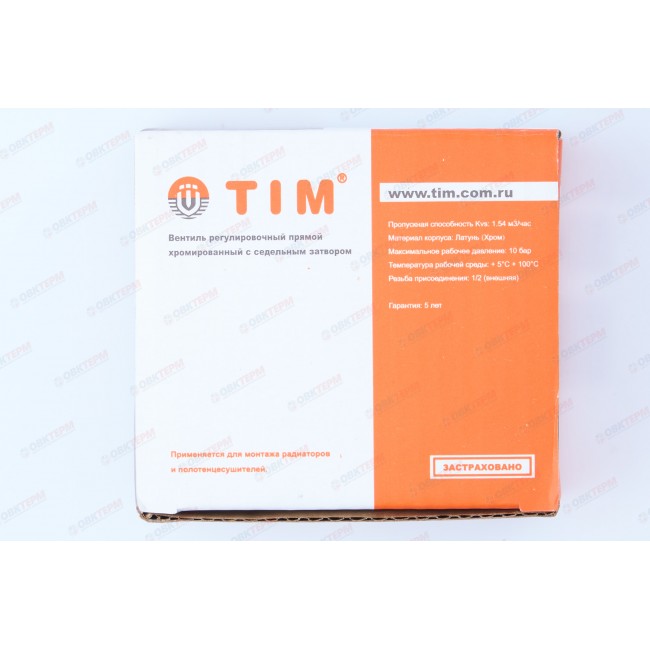 Кран вентильный с американкой 1/2"В - 1/2"Н хром, прямой, вентильный KRD302.02 TIM