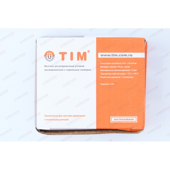 Кран вентильный с американкой 1/2"В - 1/2"Н хром, угловой, вентильный KRS301.02 TIM