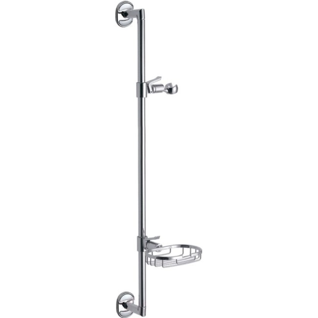 Душевая штанга F8005 FRAP с держателем лейки, мыльницей и металлической стойкой. Выполнена в цвете хром, высота 750 мм. Идеально подходит для установки в ваннах, душевых углах и кабинах.