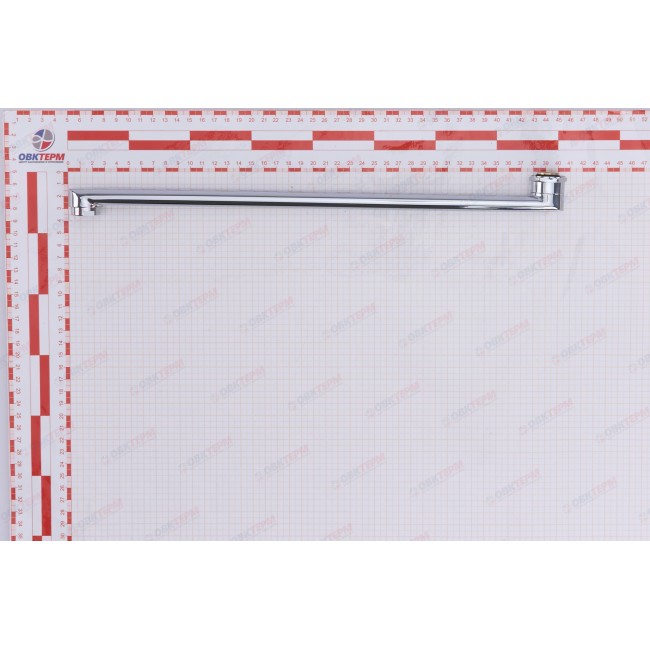 Излив 40см имеет прочную металлическую конструкцию. Поверхность изделия зеркально отполирована. Наличие аэрационной сетки обеспечивает смешение потока воды с воздухом для смягчения струи.