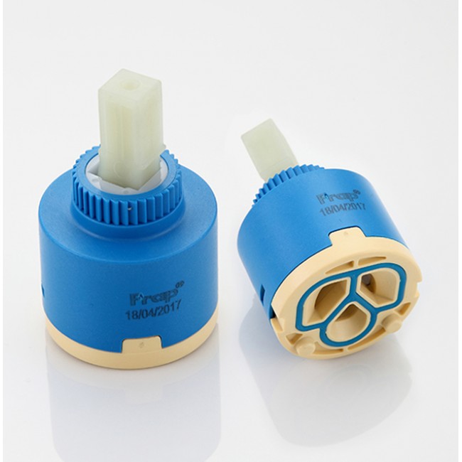 Количество в коробке: 500шт. Картридж FRAP диаметр 40 мм, пластины смешивающие воду пластик, сетка для предотвращения попадания мусора, латунный шток с колпачком под ручку, уплотнитель.