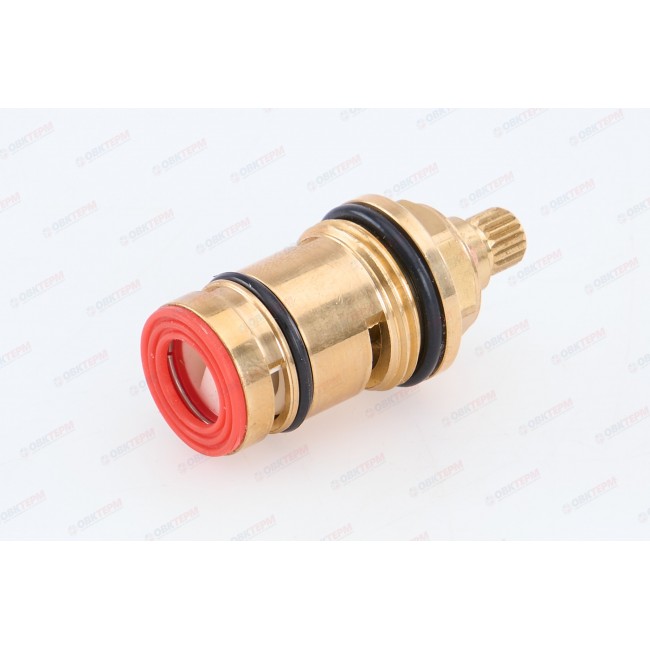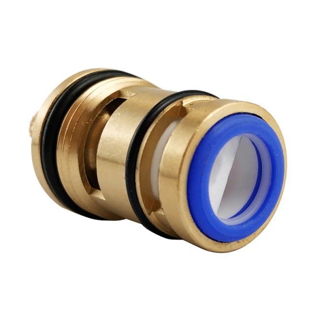 Кран-букса из керамики и латуни, устанавливается в смеситель с помощью уплотнителей и шайбы. Кран-букса используется в комплекте с двухвентильными смесителями, обеспечивая работу вентилей-маховиков по регулированию воды.
