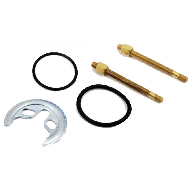Количество в коробке: 500шт. Крепление для смесителя 02 двойное - набор крепежной фурнитуры, необходимой для крепления вертикально расположенного водоразборного крана или сантехнического смесителя к сантехнической раковине умывальника или кухонной мойки. Для вертикальных водоразборных кранов и смесителей с двух-болтовым креплением