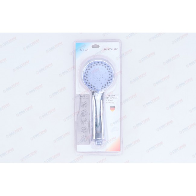 Количество в коробке: 40шт. Лейка MIXXUS SH-07 - необходимый атрибут для ванной комнаты. Лейка для душа позволяет комфортно использовать систему ручного душа, качественно распыляя водяного поток в нужном направлении. Хромовое покрытие лейки защищает её от растрескивания и помутнения покрытия. Крепление лейки к шлангу выполняется при помощи стандартного резьбового соединения, для уплотнения используются резиновые или силиконовые кольца.