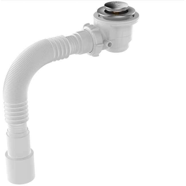 Мини-сифон для наиболее распространенного типа душевых поддонов с диаметром сливного отверстия под установку сифона 50мм. Это сифон-автомат с функцией Click-clack или «Нажми-откройся» с полностью утапливаемой герметичной крышечкой, которая не будет выступать над сливом, в закрытом положении её невозможно задеть или сломать. Крышечка-грибок легко отвинчивается, позволяя прочистить сифон от возможного засора. Система клик-клак из цинкового сплава крепится к корпусу сифона через резьбовое соединение. Для идеальной герметичности прокладка вдавлена и повторяет профиль сифона, который выполнен в цельном корпусе с минимальной монтажной высотой установки всего 65мм. Артикул идет в комплекте с гофротрубой с универсальным выходом в канализацию 40/50мм. Скорость слива: 24 л/мин.