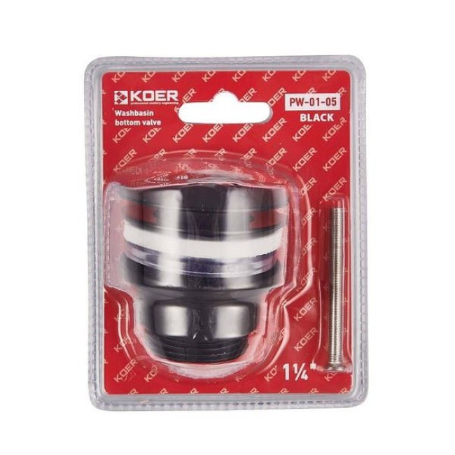Донный клапан для умывальника 1 1/4 черный PW-01-05 Koer