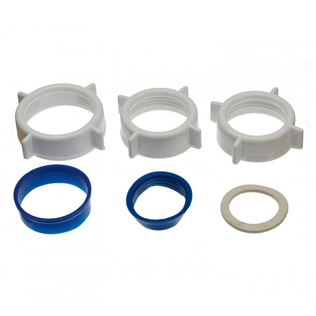 Ремонтный комплект №2 подходит к сифонам для умывальников с малым корпусом 1 1/4". В комплекте: гайка 40 - 1 шт; гайка 32 - 2 шт; прокладка коническая 32 - 1 шт; прокладка торцевая 32 - 1 шт; прокладка коничческая 40 - 1 шт.
