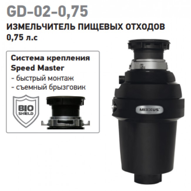 MIXXUS GD-02-0,75 Измельчитель пищевых отходов, 560Вт