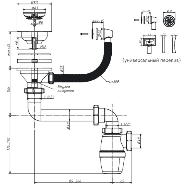 Количество в упаковке: 20шт. Сифон с большим корпусом и отстойником с нержавеющей чашкой 114мм, для мойки с круглым или прямоугольным переливом. В комплекте идут две прокладки на прямоугольный перелив – прямоугольная на квадратную форму мойки и полукруглая на круглую. А так же с отводным коленом, которое увеличивает рабочее пространство под мойкой. Необходим отвод в канализацию.