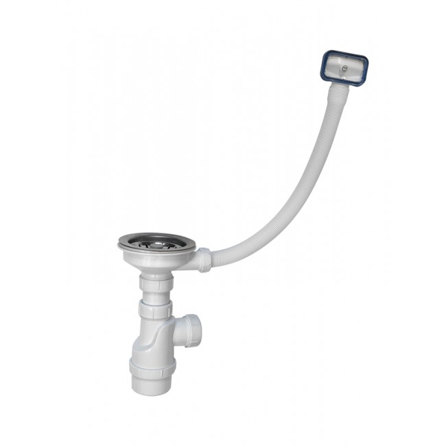 Количество в упаковке: 25шт. Сифон для кухонных моек с диаметром сливного отверстия 90мм, бутылочного типа. С разборным выпуском и нержавеющей решеткой, без перелива. Комплектующие выпуска изготовлены из композитного пластика. Выход для подключения к канализации 40мм