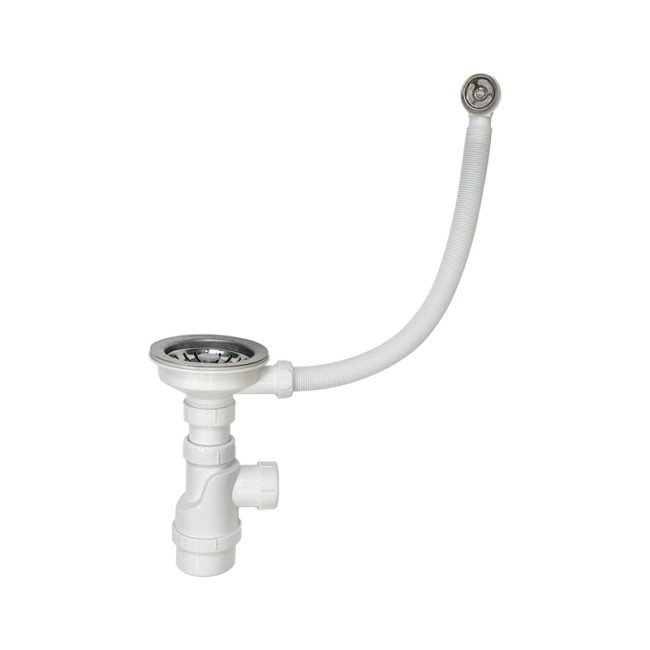 Количество в упаковке: 25шт. Сифон для кухонных моек с диаметром сливного отверстия 90мм, бутылочного типа. С разборным выпуском и нержавеющей решеткой, с круглым переливом для композитных моек. Выход для подключения к канализации 40мм