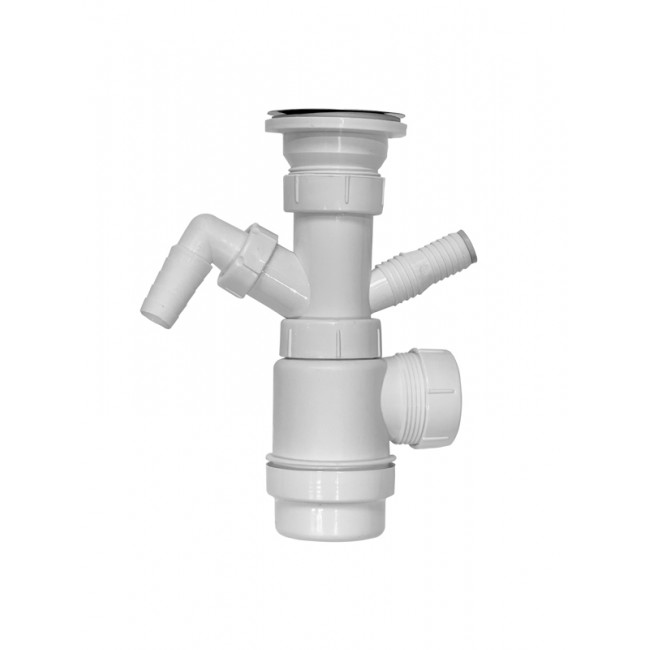 Количество в упаковке: 40шт. Сифон для кухонных моек с диаметром сливного отверстия 50 мм бутылочного типа с разборным выпуском, нержавеющей решеткой и двумя отводами для бытовой техникик Выход для подключения к канализации 40мм.