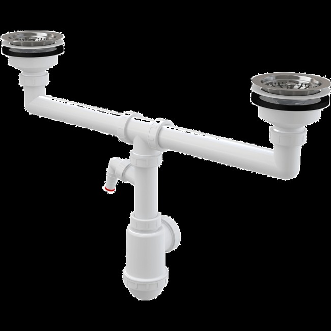 Сифон для сдвоенной мойки с нержавеющими решетками d115 и подводкой ALKAPLAST