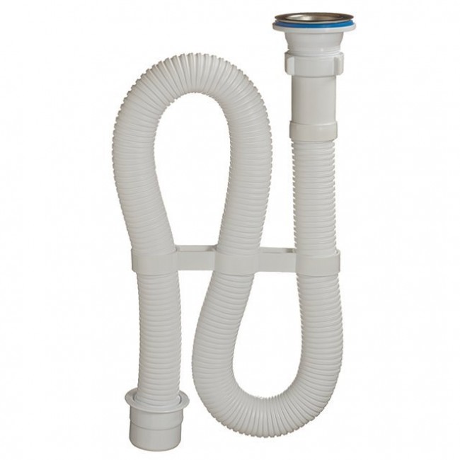Количество в коробке: 28шт. Сифон гофрированный 1 1/2"х40 для раковины и мойки, с нержавеющей чашкой д.70мм, надёжным трёхходовым хомутом и переходником 50мм в канализацию. Длина гибкой трубы с патрубком 1000мм. Характеристика:материал сифонаполипропилен; материал решетки нерж. сталь; диаметр решетки, мм 70; входное отверстие 1-1/2"; выходное отверстие, мм40; труба гофрированная 40–40;